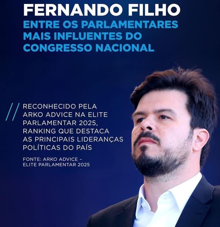 DEPUTADO FEDERAL FERNANDO FILHO,Mais uma vez, tenho a honra de estar entre os parlamentares mais influentes do Congresso Nacional, segundo o ranking Elite Parlamentar 2025 da Arko Advice.