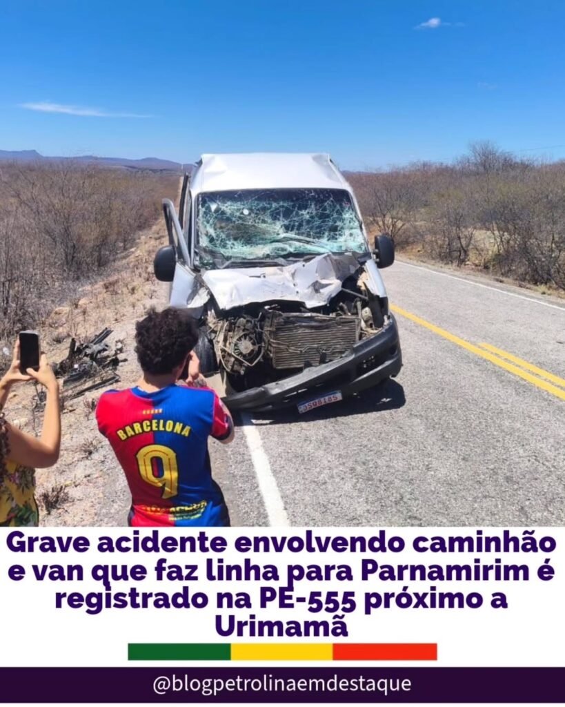 Um grave acidente envolvendo um caminhão e uma van que faz linha para Parnamirim foi registrado na PE-555 próximo a Urimamã, segundo informações repassadas para nossa redação a Van colidiu com a traseira de um caminhão, não há informações sobre o estado de saúde das vítimas. Em breve mais detalhes