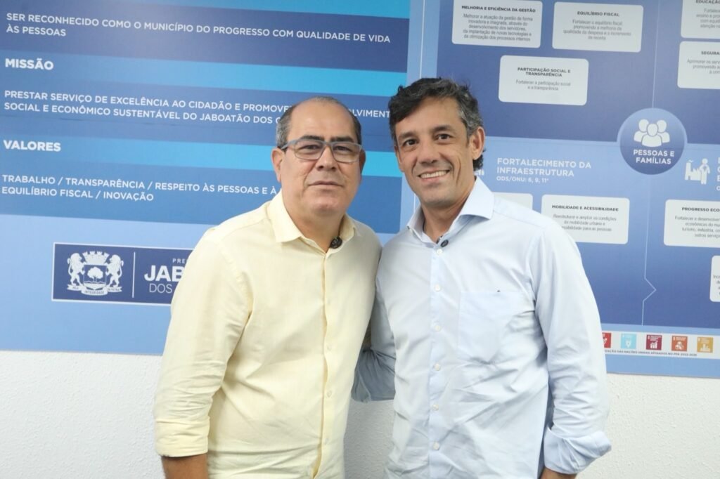 O prefeito de Jaboatão dos Guararapes, Mano Medeiros, recebeu, nesta terça-feira (7), o secretário estadual do Meio Ambiente, Sustentabilidade e de Fernando de Noronha, Daniel Coelho, para tratar das soluções contra a erosão marinha que afeta a orla do município, uma das mais impactadas pelo fenômeno em Pernambuco. Como resultado do encontro, ficou definida a criação de um grupo de trabalho formado por técnicos das equipes do município e do Estado, que irá elaborar propostas para conter o avanço do mar nos pontos críticos da orla. A próxima reunião do grupo já está agendada para o dia 21 de outubro.