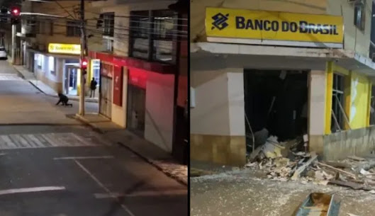 Imagens feitas por moradores mostram os suspeitos encapuzados e armados enquanto posicionam explosivos na entrada da agência.