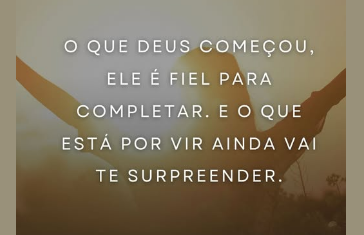 Continue confiando. Continue avançando. O que Deus começou, Ele é fiel para completar. E o que está por vir ainda vai te surpreender.