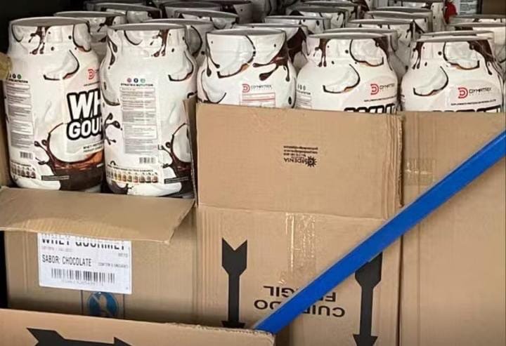 Foram 4 toneladas de whey protein, creatina e outros produtos apreendidos — tudo reembalado com rótulos falsos e vendido como se fosse original. 😱