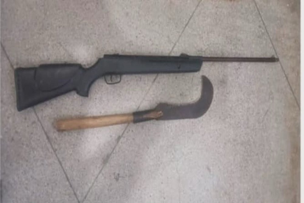 Durante a abordagem ao veículo suspeito, os militares encontraram uma foice. Ao ser questionado, o homem informou que possuía uma espingarda guardada. Na verificação, os policiais constataram que a arma havia sido adaptada para calibre .22, embora não tenham sido encontradas munições no local.
