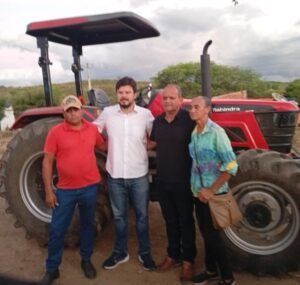 A entrega do trator aconteceu na zona rural de Verdejante e reuniu agricultores que celebraram a chegada do equipamento, considerado fundamental para o fortalecimento das atividades no campo.
